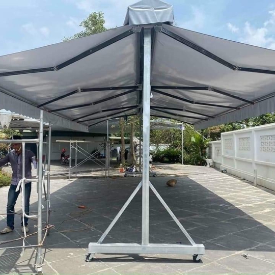 Công trình thực tế. Lấp đặt bạt xếp di động. CTy mái xếp Tuấn phát chuyên sản xuất và nhận lấp đặt bạt xếp không ngại ngầm xa. Mái lớn hai mái nhỏ. Có nhận viên chuyên nghiệp lấp đặt nhanh gọn. Xuất hóa đơn theo yêu cầu. Chất lượng tốt nhất. Giá tại góc.