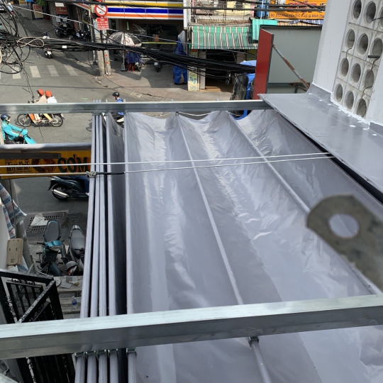 Công trình thực tế nhận lấp đặt bạt xếp mái che. Mái xếp tiện lợi cho mọi nhà. Mọi người khi sử dụng. Kéo ra xếp lại khi dùng. Chất liệu bạt bền chiệu mưa nắng được nhiều năm vững chất. Mái xếp được tính bằng mét vuông. Bao trọn gói. Giá rẻ. Chất lượng tốt. Bảo hành dài hạng.