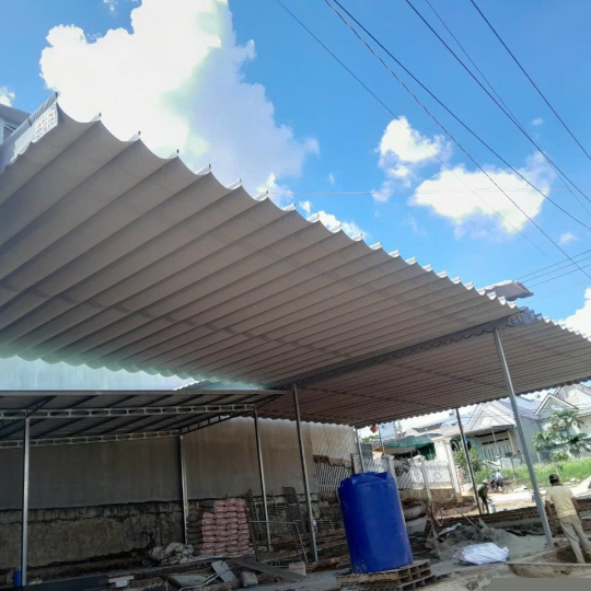 Công trình thực tế. Lấp đặt bạt xếp di động. CTy mái xếp Tuấn phát chuyên sản xuất và nhận lấp đặt bạt xếp không ngại ngầm xa. Mái lớn hai mái nhỏ. Có nhận viên chuyên nghiệp lấp đặt nhanh gọn. Xuất hóa đơn theo yêu cầu. Chất lượng tốt nhất. Giá tại góc.