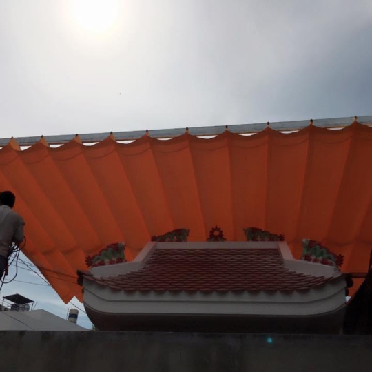 Công trình thực tế. Lấp đặt bạt xếp di động. CTy mái xếp Tuấn phát chuyên sản xuất và nhận lấp đặt bạt xếp không ngại ngầm xa. Mái lớn hai mái nhỏ. Có nhận viên chuyên nghiệp lấp đặt nhanh gọn. Xuất hóa đơn theo yêu cầu. Chất lượng tốt nhất. Giá tại góc.